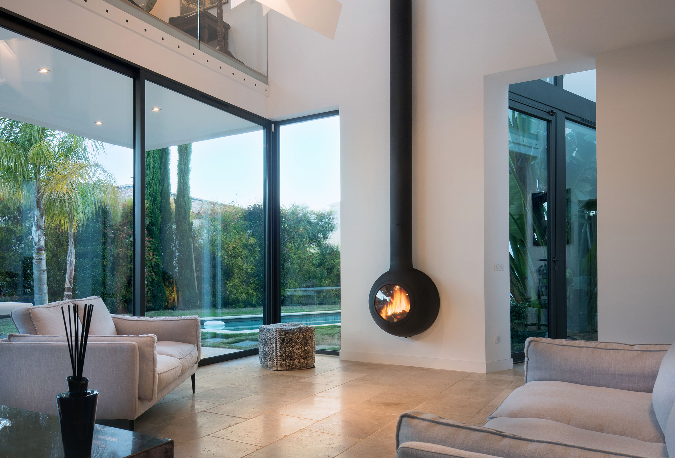Cheminée / poêle mural suspendu (départ vertical)